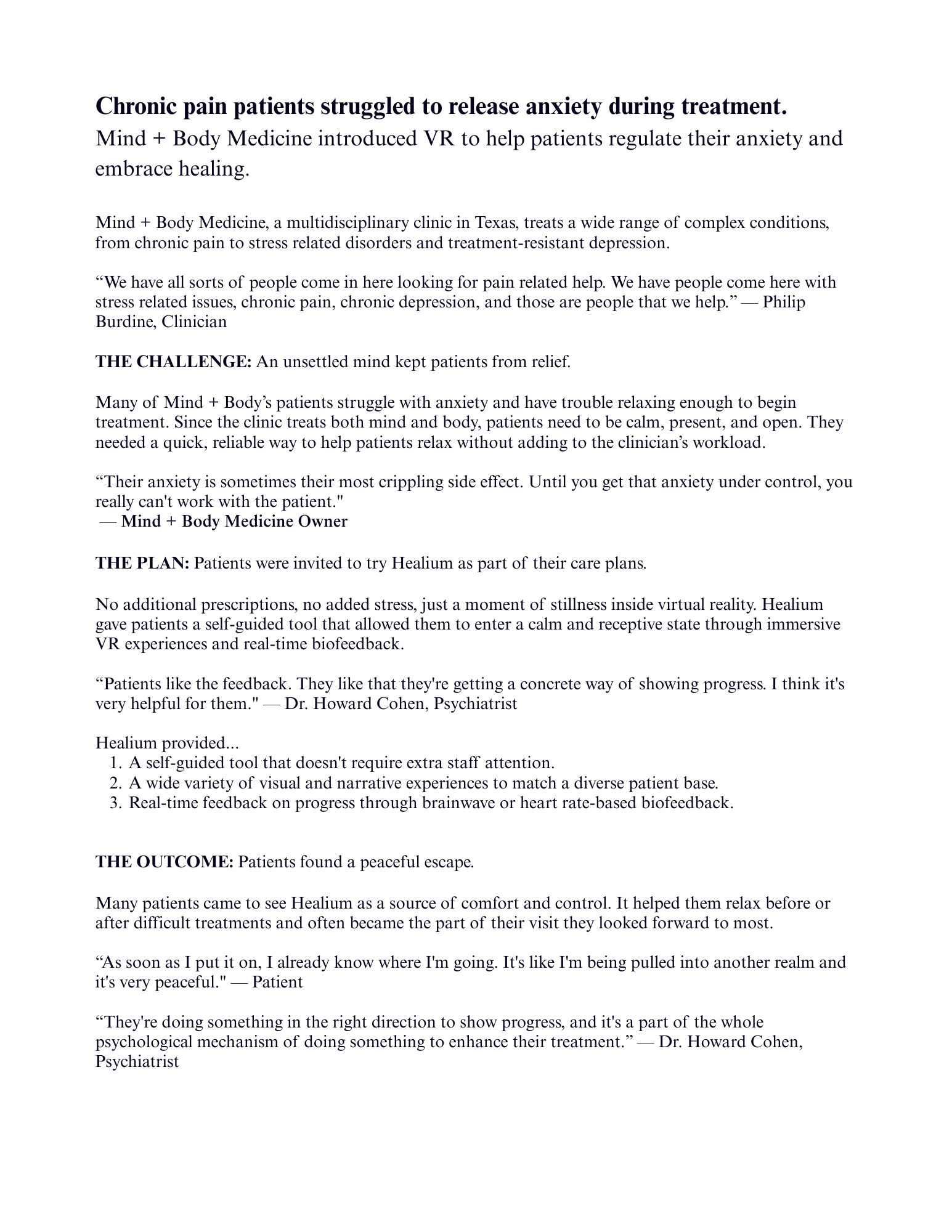 I played a key role in supporting Healium’s strategic shift from a direct-to-consumer model to a business-to-business focus. By repositioning the product as a measurable mental fitness solution for clinicians, educators and organizations, I helped move the brand beyond individual wellness and into professional settings where outcomes matter most.